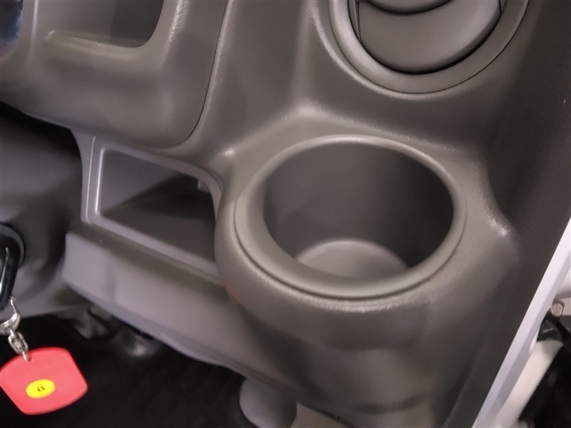 カップホルダーは、ペットボトルを置いても、前方視界を遮らない高さに設定されています。小物入れとしてもご利用いただけます。