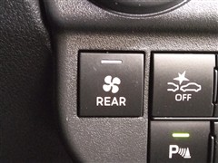 リヤヒータースイッチです。後席足元の送風口部には、設定温度調整レバーも装備されています。