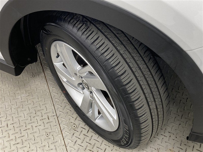 全体のスタイルを引き締める純正アルミホイール。 止まっていても存在感のあるデザイン。