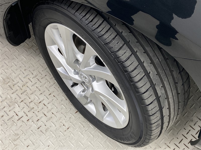 全体のスタイルを引き締める純正アルミホイール。 止まっていても存在感のあるデザイン。