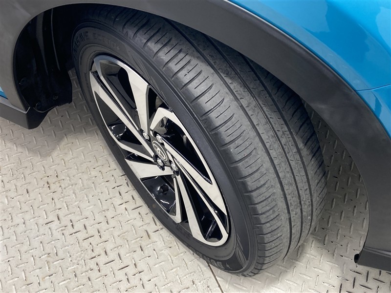 全体のスタイルを引き締める純正アルミホイール。 止まっていても存在感のあるデザイン。