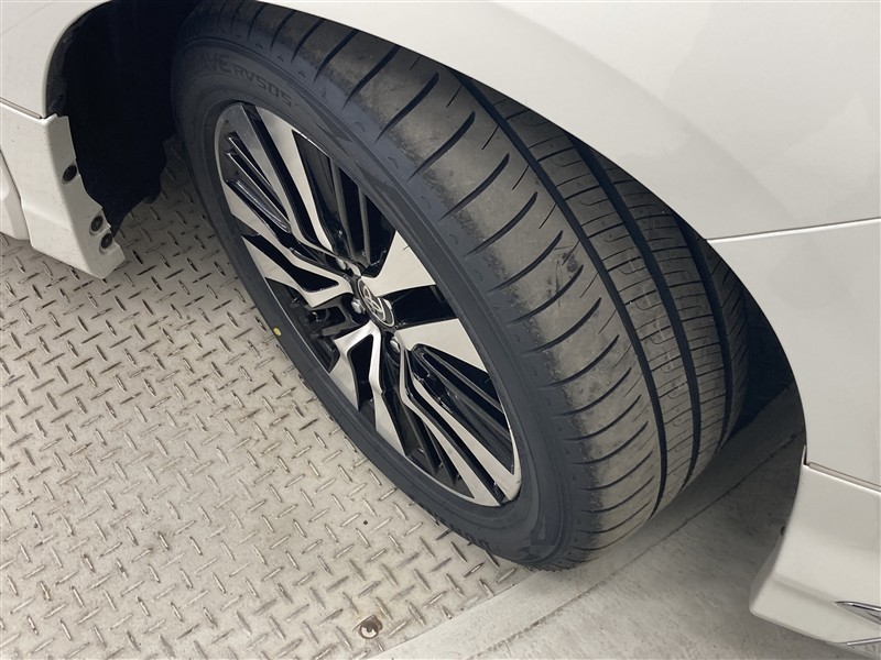 全体のスタイルを引き締める純正アルミホイール。 止まっていても存在感のあるデザイン。