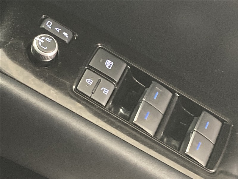格納式リモコンドアミラーと、パワーウィンドウマスタースイッチです。車内の換気も運転席から簡単に行えます。