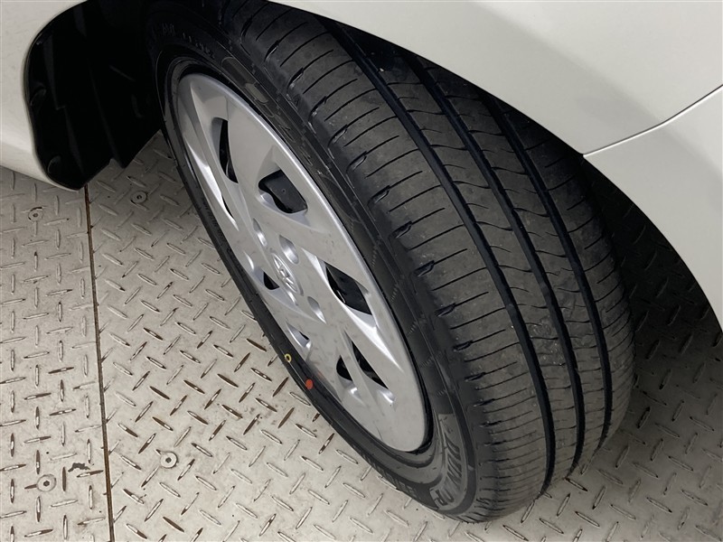 ホイールキャップ付きです。ホイールの上にカバーを付けています。デザインと空力の事も考えられています。