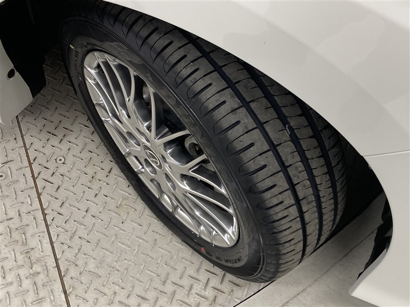 全体のスタイルを引き締める純正アルミホイール。 止まっていても存在感のあるデザイン。