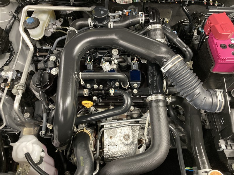 エンジンルームもきれいに洗剤とブラッシングでまるごとクリーニングしています。