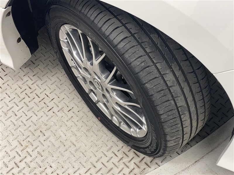 全体のスタイルを引き締める純正アルミホイール。 止まっていても存在感のあるデザイン。