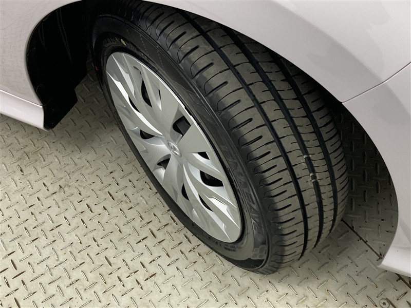 ホイールキャップ付きです。ホイールの上にカバーを付けています。デザインと空力の事も考えられています。
