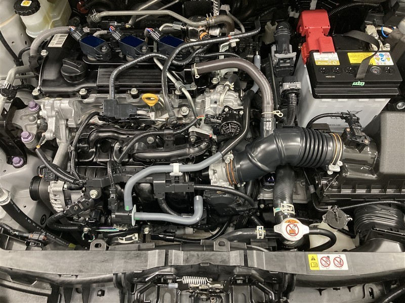 エンジンルームもきれいに洗剤とブラッシングでまるごとクリーニングしています。
