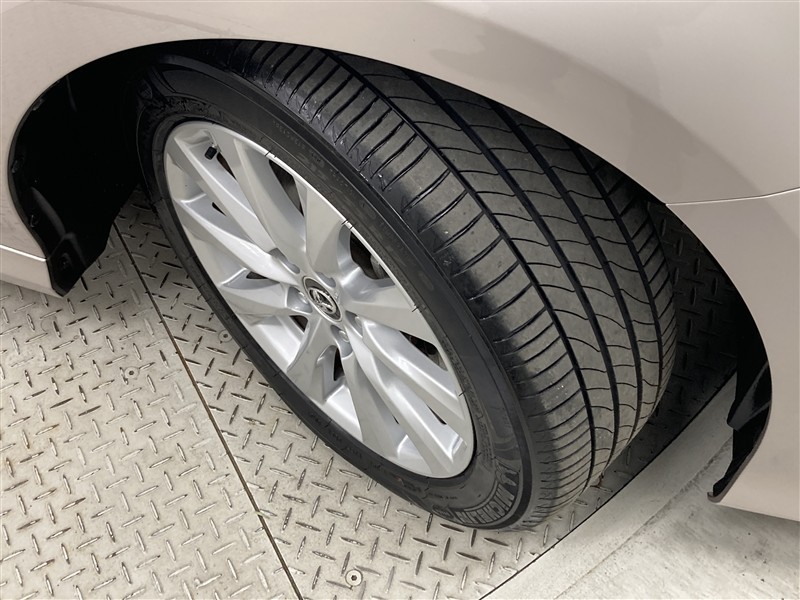 全体のスタイルを引き締める純正アルミホイール。 止まっていても存在感のあるデザイン。