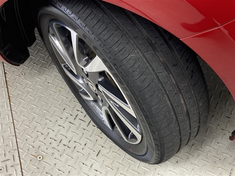 全体のスタイルを引き締める純正アルミホイール。 止まっていても存在感のあるデザイン。