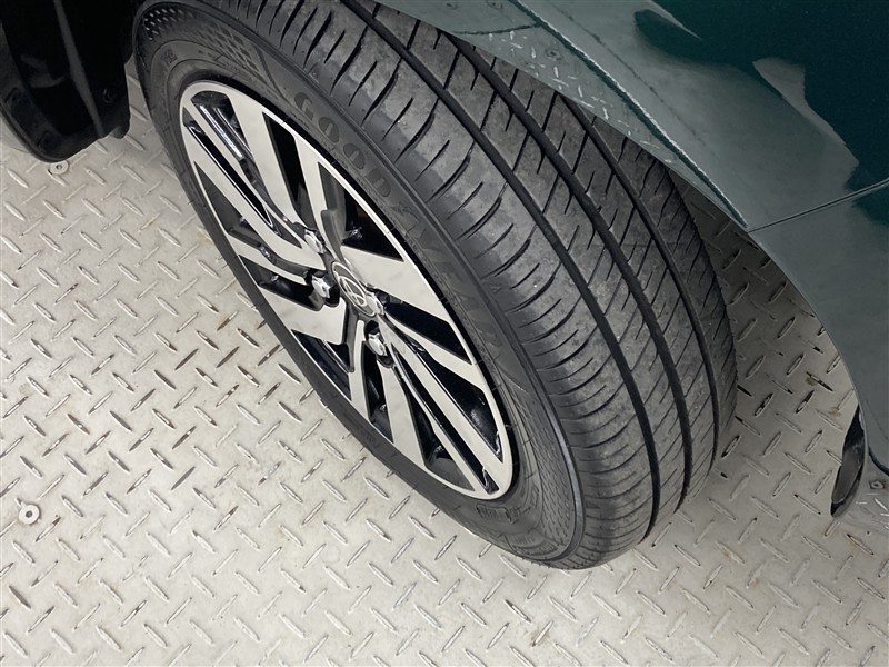 全体のスタイルを引き締める純正アルミホイール。 止まっていても存在感のあるデザイン。