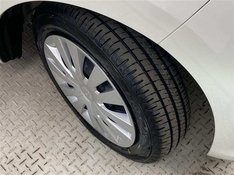 ホイールキャップ付きです。ホイールの上にカバーを付けています。デザインと空力の事も考えられています。