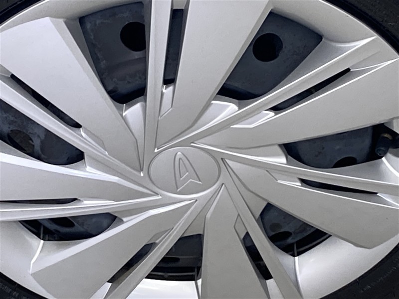 ホイールキャップ付きです。ホイールの上にカバーを付けています。デザインと空力の事も考えられています。