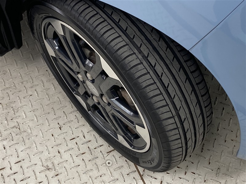 全体のスタイルを引き締める純正アルミホイール。 止まっていても存在感のあるデザイン。