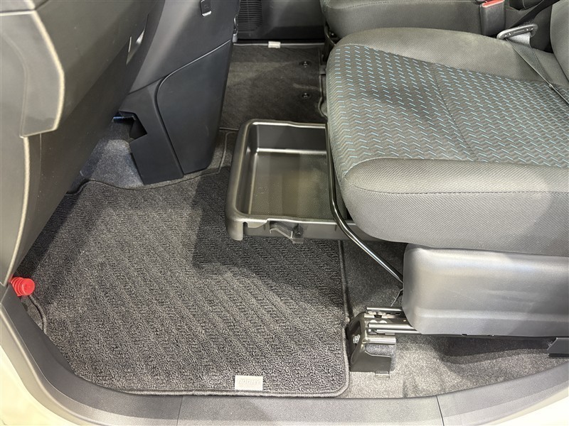 助手席シート下の収納スペースです。普段使わないものを収納しておけます。