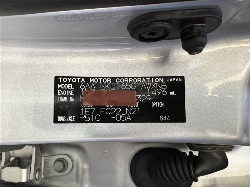 コーションプレートです。フレームナンバーやカラーコードなどが記載されています。