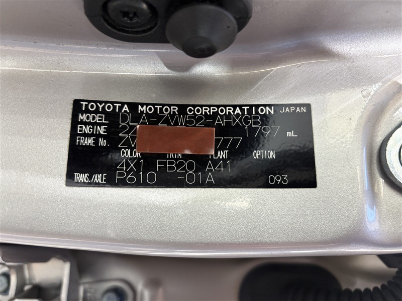 コーションプレートです。フレームナンバーやカラーコードなどが記載されています。