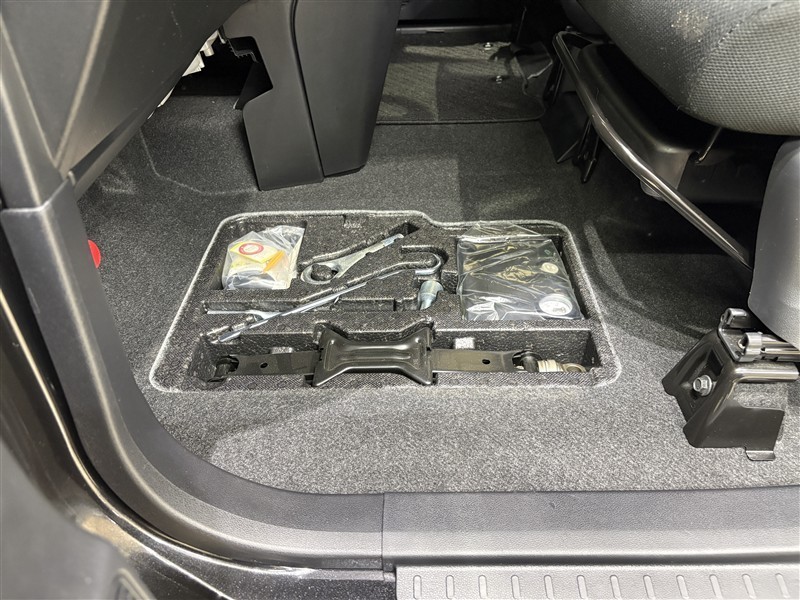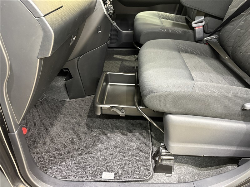 助手席シート下の収納スペースです。普段使わないものを収納しておけます。