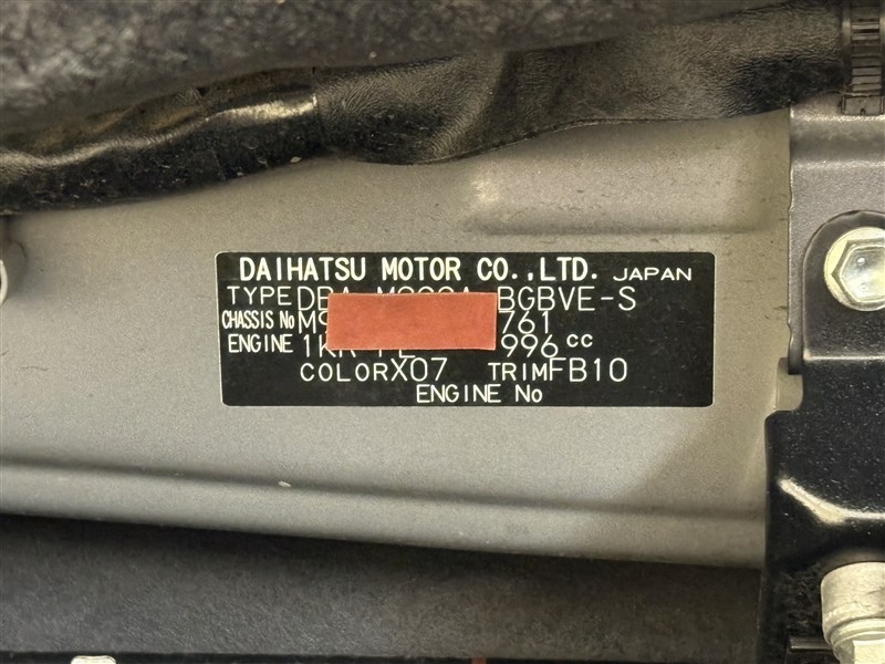 コーションプレートです。フレームナンバーやカラーコードなどが記載されています。