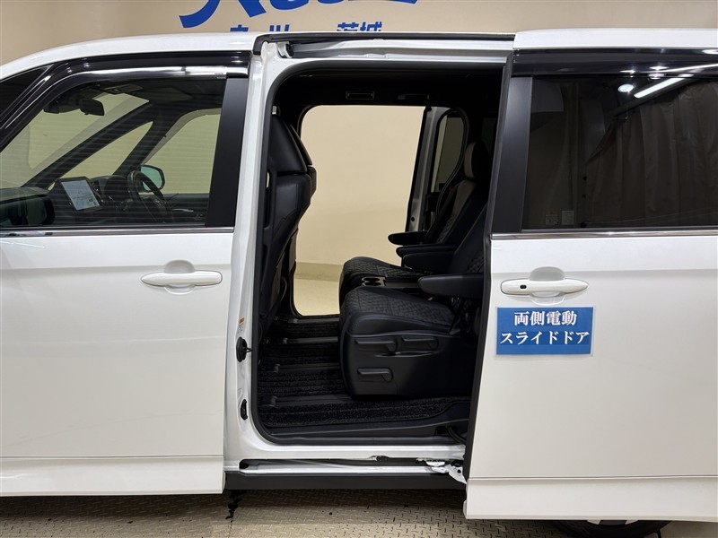 [両側電動スライドドア]スライドドアですので、狭いスペースでも、隣の車を気にせず開閉できます。狭い場所でもドアを十分に大きく開くことが出来るので乗り降りや荷物を載せるのに便利です。