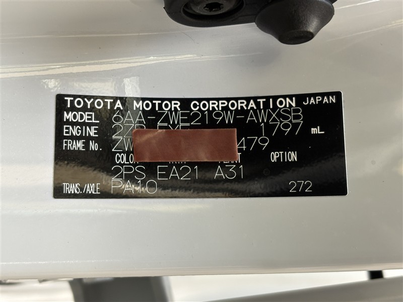 コーションプレートです。フレームナンバーやカラーコードなどが記載されています。
