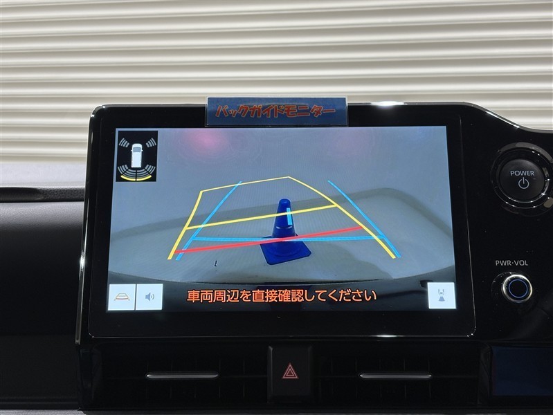 <バックガイドモニター>大画面なので大きく映り、ハンドル操作に連動した予想進路図を確認しながら、より安全に駐車できます!補助装置になりますので、目視でもご確認ください。