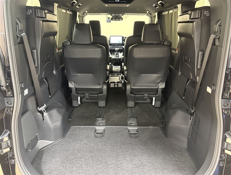 3列目が跳ね上げ式になっているので、跳ね上げて固定すれば広々とした空間が出現!大きな荷物も積めちゃいます。