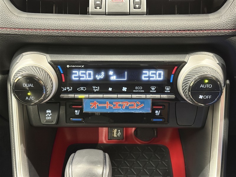 運転席と助手席で温度設定可能なデュアルモードオートエアコン装備。左右独立して自動で温度を調整して快適空間を保ちます。