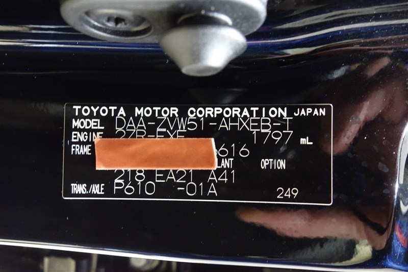 コーションプレートです。フレームナンバーやカラーコードなどが記載されています。