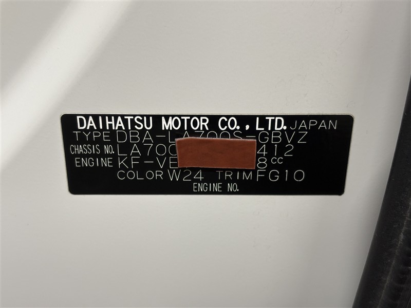 コーションプレートです。フレームナンバーやカラーコードなどが記載されています。