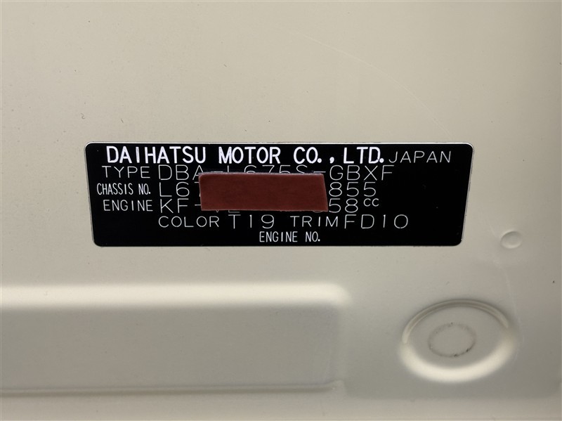 コーションプレートです。フレームナンバーやカラーコードなどが記載されています。