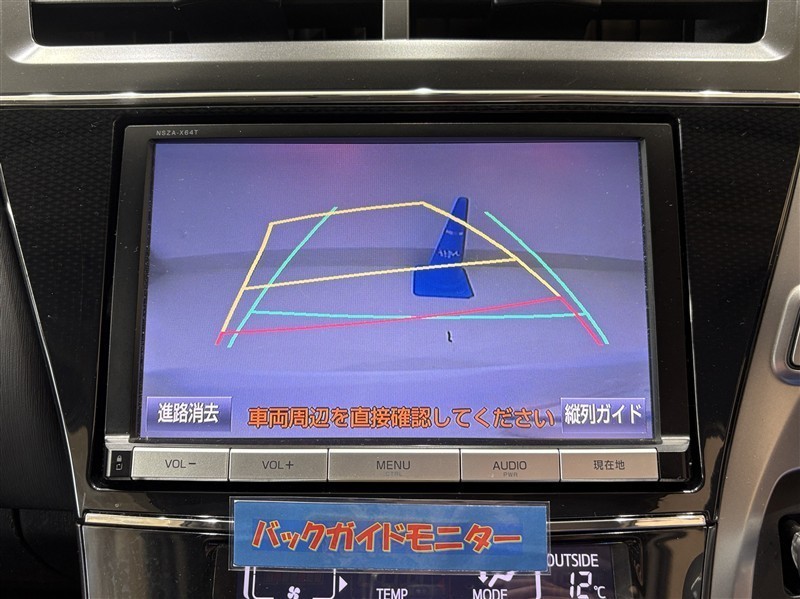 <バックガイドモニター>ハンドル操作に連動した予想進路図を確認しながら、より安全に駐車できます!補助装置になりますので、目視でもご確認ください。