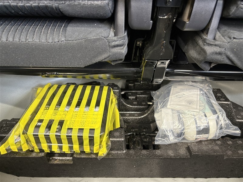 タイヤがパンクした時の応急修理キットです。スペアタイヤがないことにより軽量化でき環境にもいいです。