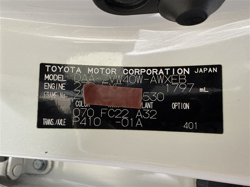 コーションプレートです。フレームナンバーやカラーコードなどが記載されています。