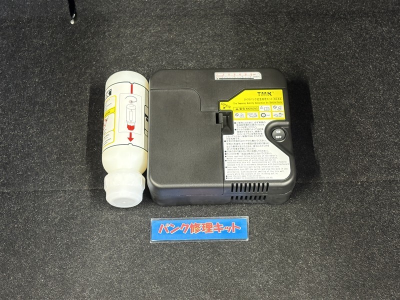 タイヤがパンクした時の応急修理キットです。スペアタイヤがないことにより軽量化でき環境にもいいです。