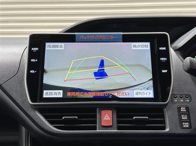 <バックガイドモニター>ハンドル操作に連動した予想進路図を確認しながら、より安全に駐車できます!補助装置になりますので、目視でもご確認ください。