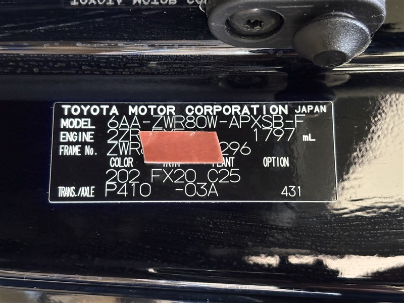 コーションプレートです。フレームナンバーやカラーコードなどが記載されています。