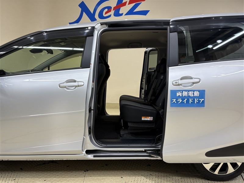 [両側電動スライドドア]スライドドアですので、狭いスペースでも、隣の車を気にせず開閉できます。狭い場所でもドアを十分に大きく開くことが出来るので乗り降りや荷物を載せるのに便利です。