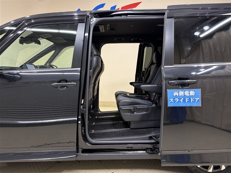 [両側電動スライドドア]スライドドアですので、狭いスペースでも、隣の車を気にせず開閉できます。狭い場所でもドアを十分に大きく開くことが出来るので乗り降りや荷物を載せるのに便利です。