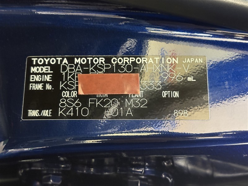 コーションプレートです。フレームナンバーやカラーコードなどが記載されています。