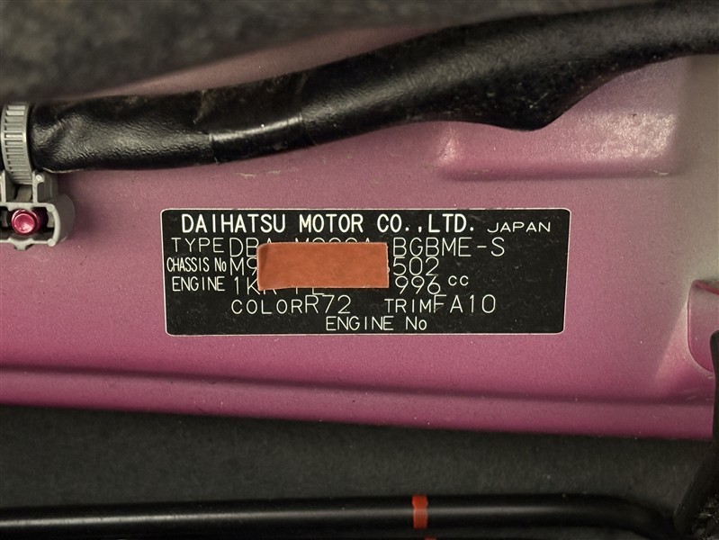 コーションプレートです。フレームナンバーやカラーコードなどが記載されています。