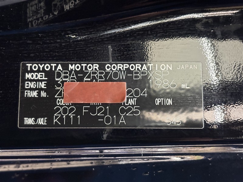 コーションプレートです。フレームナンバーやカラーコードなどが記載されています。