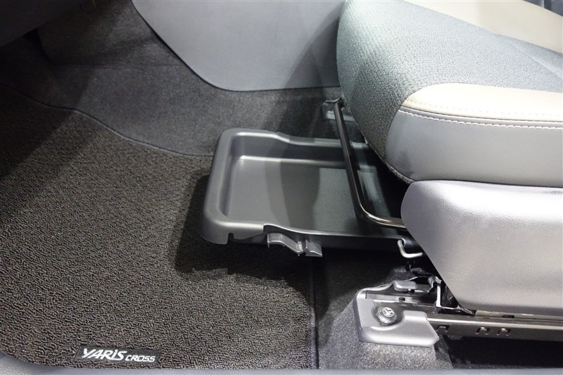助手席シート下の収納スペースです。普段使わないものを収納しておけます。