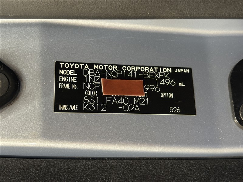 コーションプレートです。フレームナンバーやカラーコードなどが記載されています。