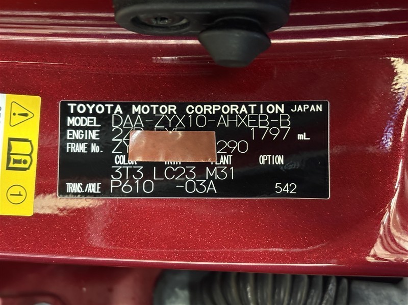 コーションプレートです。フレームナンバーやカラーコードなどが記載されています。