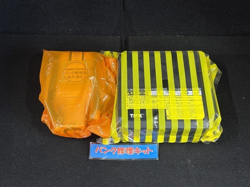 タイヤがパンクした時の応急修理キットです。スペアタイヤがないことにより軽量化でき環境にもいいです。