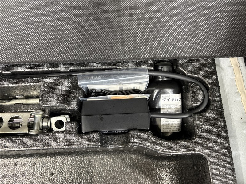 タイヤがパンクした時の応急修理キットです。スペアタイヤがないことにより軽量化でき環境にもいいです。