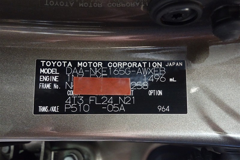 コーションプレートです。フレームナンバーやカラーコードなどが記載されています。