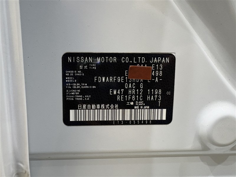 コーションプレートです。フレームナンバーやカラーコードなどが記載されています。